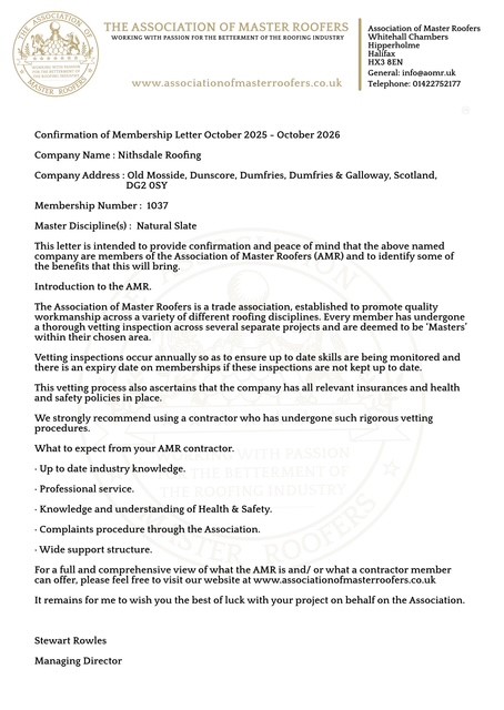 Nithsdale Roofing | The Association of Master Roofers | Specialist Contractor